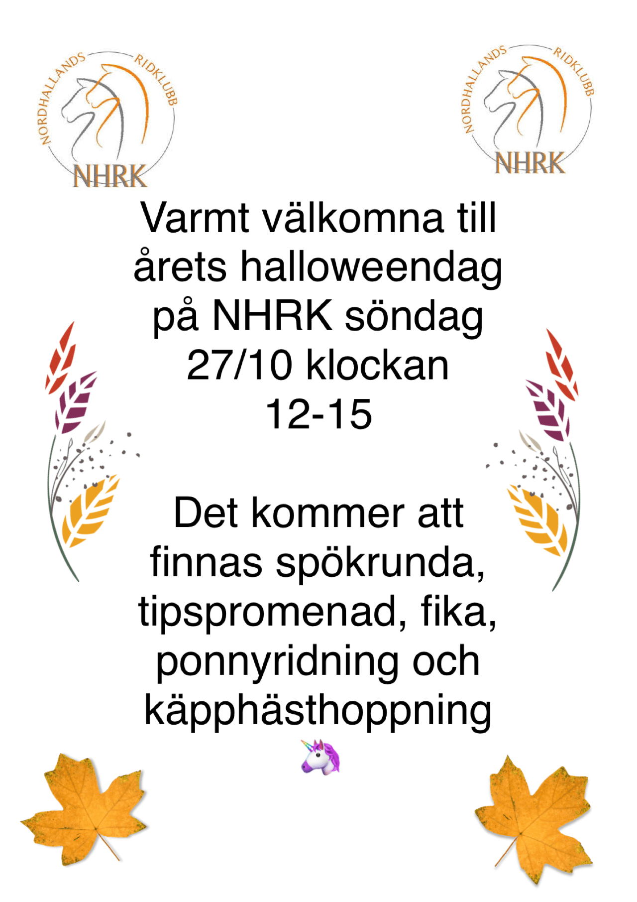 Halloween dag på NHRK söndag 27/10 kl 12:00-15:00