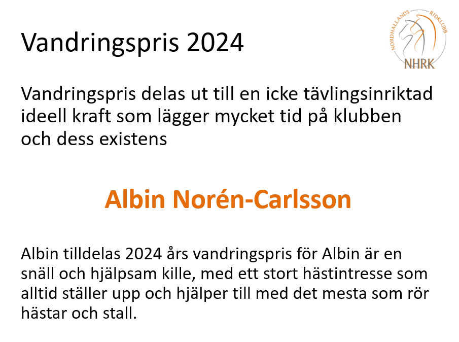 På årsmötet kommer Hederspris och Vandringspris för 2024 delas ut
