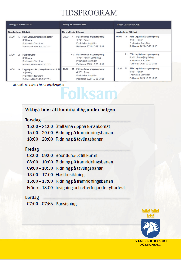 Den 31 oktober–2 november går tävlingen av stapeln, och alla är varmt välkomna att besöka oss under hela helgen.