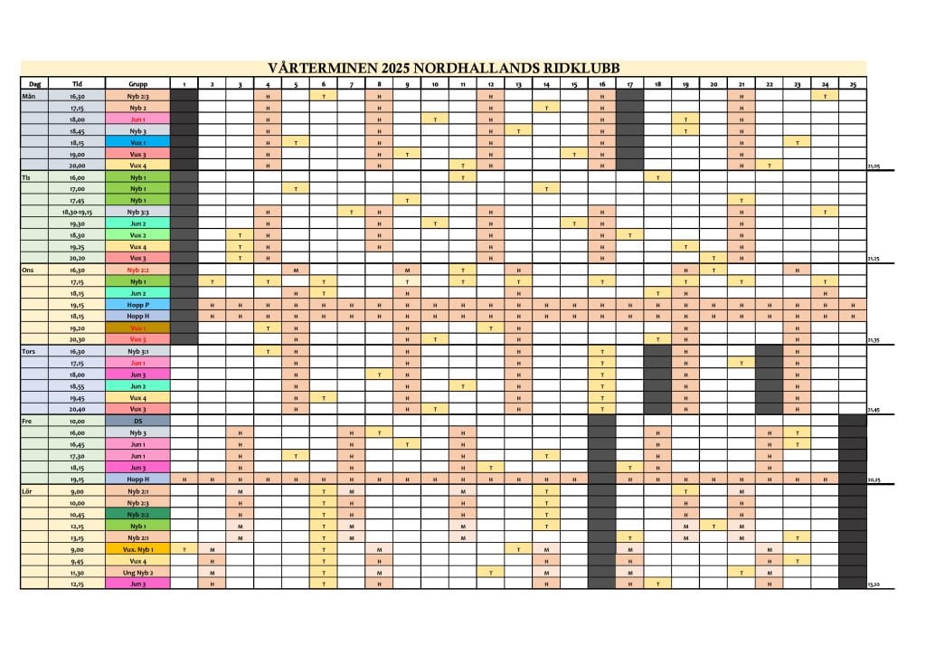 Teorischemat ligger under Ridskolan kika på det så ni ser när det är teori respektive hoppning för er grupp.